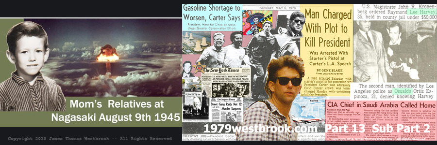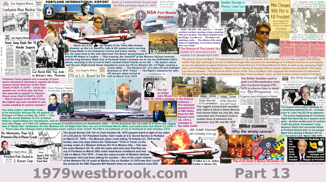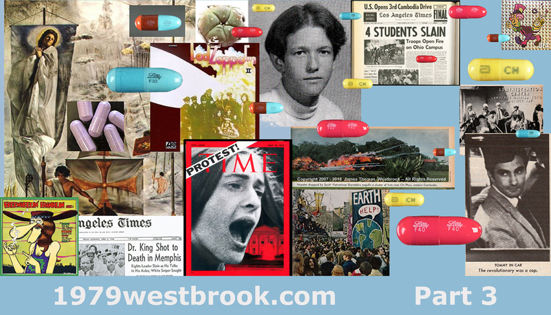 Copyright 2001 - 2020 James Thomas Westbrook --- All Rights Reserved --- The author exercises any and all rights of exclusivity he is lawfully entitled to pursuant U.S. Copyright Law as a literary property. --- "1979" is a copyrighted non-fiction book technically speaking, and was first registered with the U.S. Copyright Office on December 31st 2001. ---- The author and artist also exercises any and all copyright protection he is entitled to as a graphic artist,regarding the copyrighted photo art montages included thereon each and every one of the title pages of Parts 1 through 13 of "1979" and their respective Sub-Parts contained therein "1979" and which are posted online at 1979westbrook.com. --- The author and artist James Thomas Westbrook --- also Reserves All Rights to these said same copyrighted photo art montages from "1979" which are posted at 1979westbrook.com and which now posted here at: 1970Posters.Com --- Any and all inquiries regarding the copyrighted materials displayed here at this website should be addressed to the copyright holder James Thomas Westbrook and sent by e-mail to: 1979Visions@protonmail.com