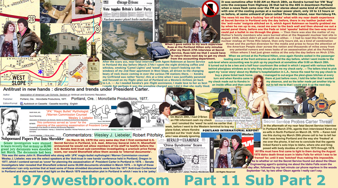 ce From FBI, & CIA ---'Drafting' U.S. Secret Service To Keep Them 'In Check' At The Airport --- It's Unforeseen, 'Three Mile Island' Nuclear Meltdown Consequences --- What's Worse This Is Sure To Grab The Headlines For Days If Not Weeks --- Should Things Get Violent Or Bloody At The Airport Between Secret Service & The CIA 'Spooks' Setting Up The Assassination Frame-Up Scam At The Portland Hilton --- It Would Be Swallowed Up By All The Media Hyped News Reports Of The Unfolding Three Mile Nuclear Disaster --- This Only 12 Hours After My Interview At U.S. Secret Service In Portland With Agent Robinson Wearing My Jacket With The Anti-Nuclear Power Patch --- My Relatives At Nagasaki --- What Are The Odds All This Is Coincidence