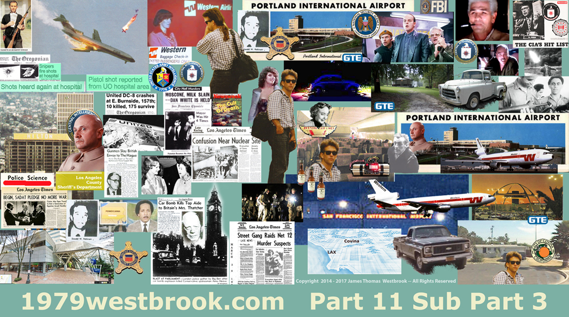 //////////////////////////////////Showdown At The Western Airlines Corral --- The Opposing Send-off Parties 'Dressed To Kill' & Ready To Open Fire Too --- My Long Distance Call To A Half-Sister Who Gets The Word On Another Line To Hang-up The Phone --- The Airport Long Distance 'Black Out' & My ESP Like 'Face Off' With The CIA 'Spook' In Charge --- Kendra's Dad's Phone And A Shot Of 'V.O.' On The Way Out --- The Frenzied Arrival Of Dad's Cuban Freinds As We Drive Off --- Seated Aboard My Flight To L.A. --- The 'Drugged' Breifcase Bomber Carried To His Seat, To Scare Me Off The Plane --- Waiting For The Bomb To Off --- A Second Late Passenger Sent On 40 Minutes Later Sent On Board To Pull The Wires On The Bomb Carried On By The First --- An Unscheduled 'Layover' At 'SFO' 'Frisko' --- Fears Of Being Grabbed Off The DC-10 --- My 'Red Eye' Arrival At LAX, Prayers Of Thanks My Ride Back To Covina --- Post Traumatic Stress