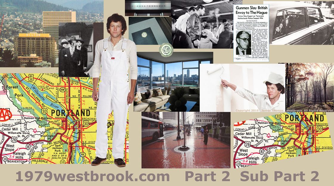 As we were working in some rather large Penthouse like suites near the top of the top floor of the Hilton all alone ---- I could only surmise that I was transferred there in order to interact with this other paInter in exile --- and perhaps tip my hand as what I had also discovered, or possibly already knew up to that time on March 23, 1979 --- Being alone up there with that 'Spaced Out' looking painter , so close to quitting time and the weekend and all ---- I decided that I better not get too inquisitive ---- at least not yet, and for sure not there at the Portland Hilton ---- so I just played it cool and went on about the work that I had been assigned to for the afternoon.