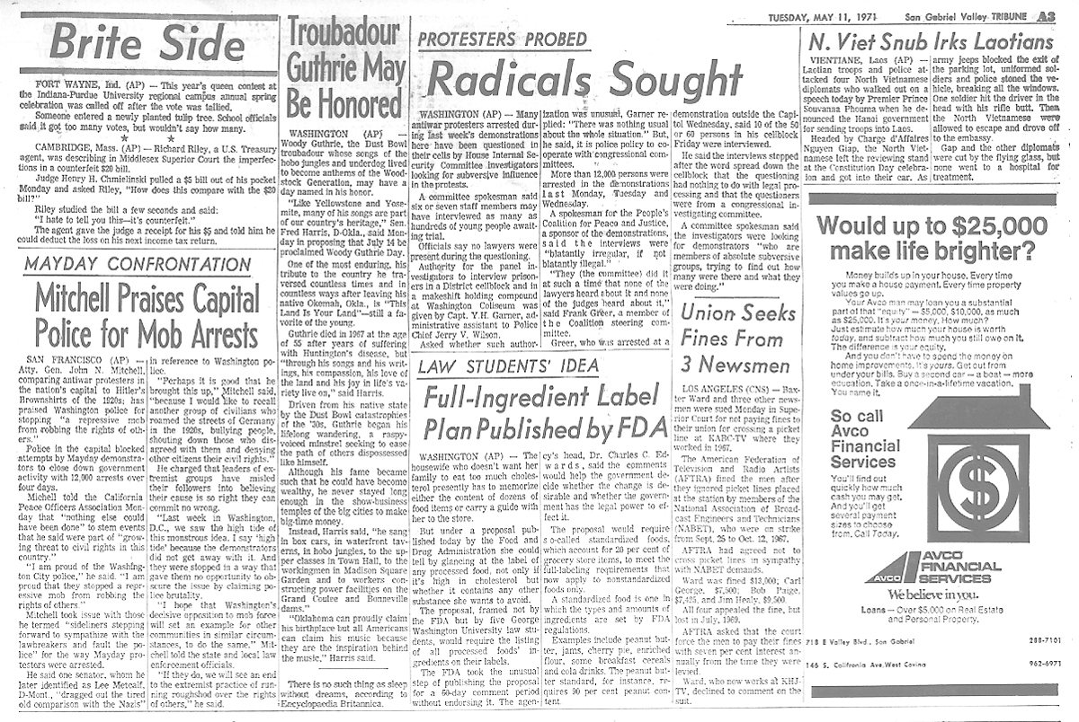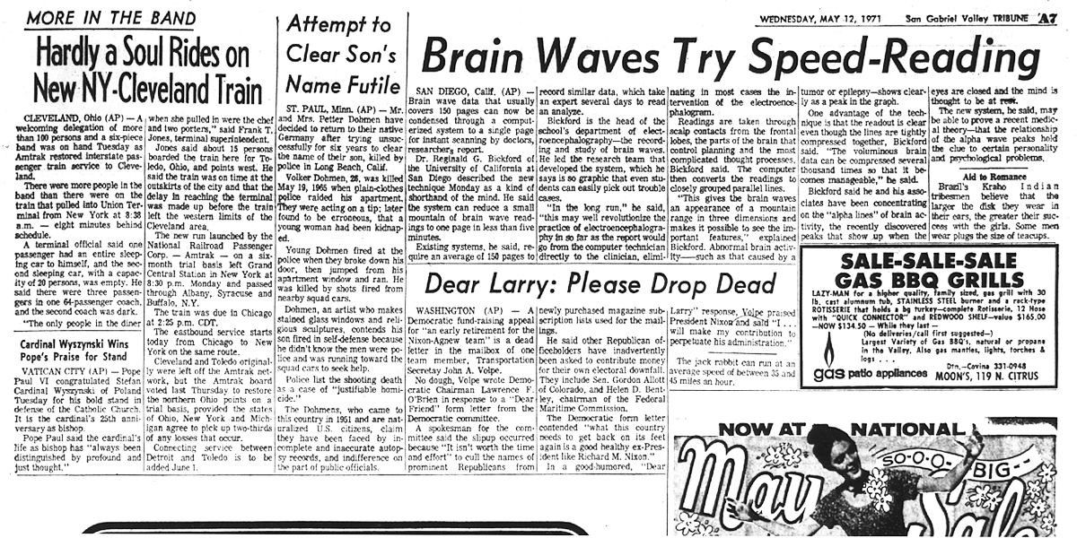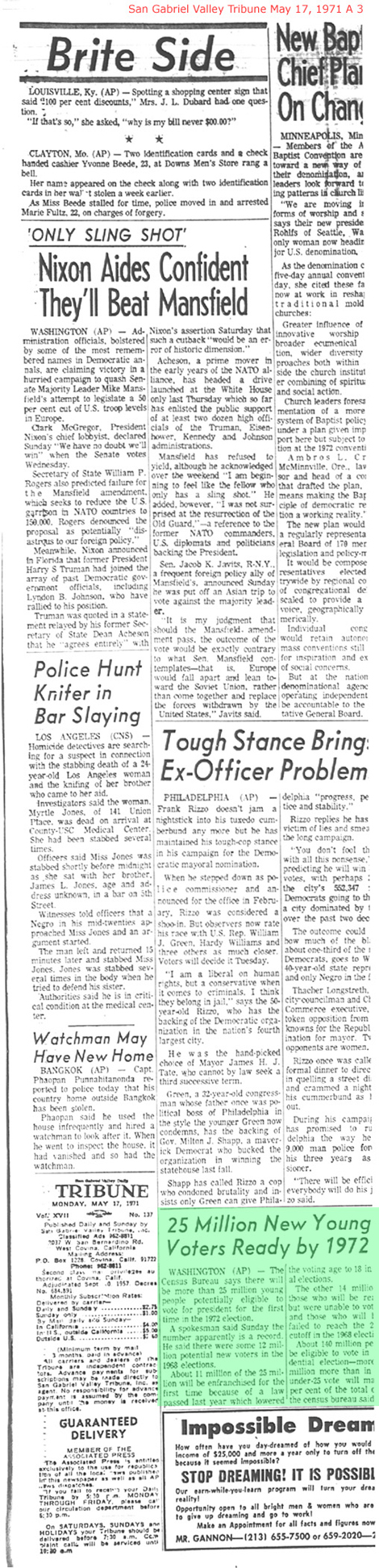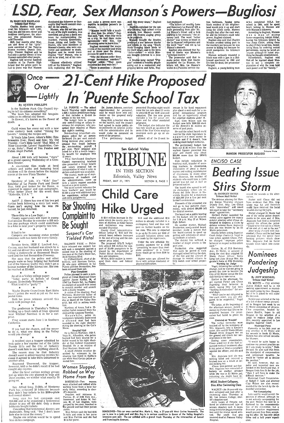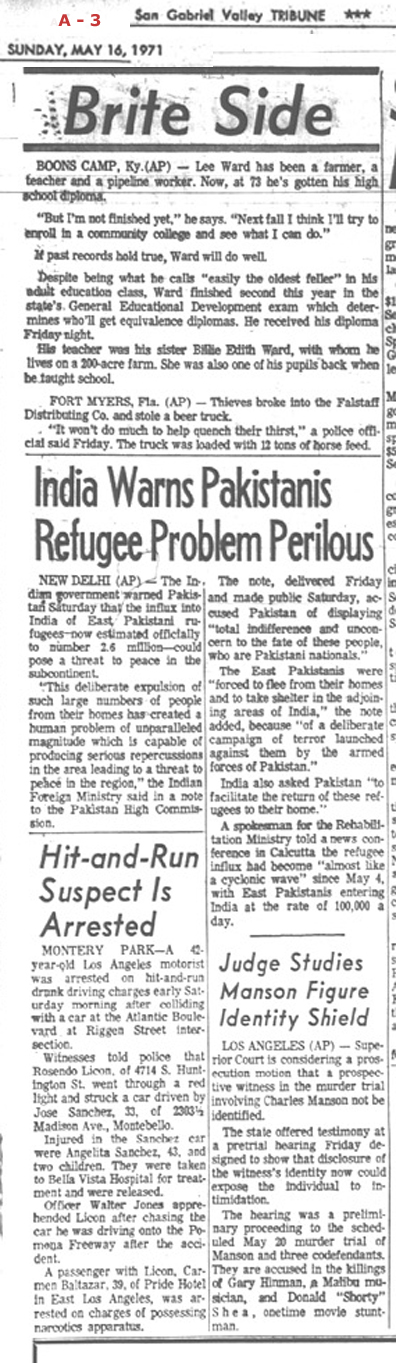 Newspaper articles from that time period in the days that followed my release from custody at Biscailuz Center on April 13th 1971.