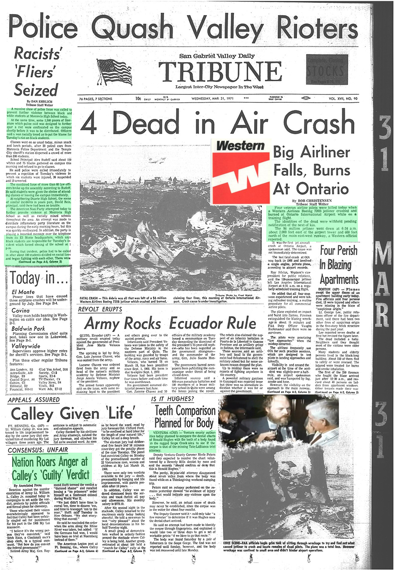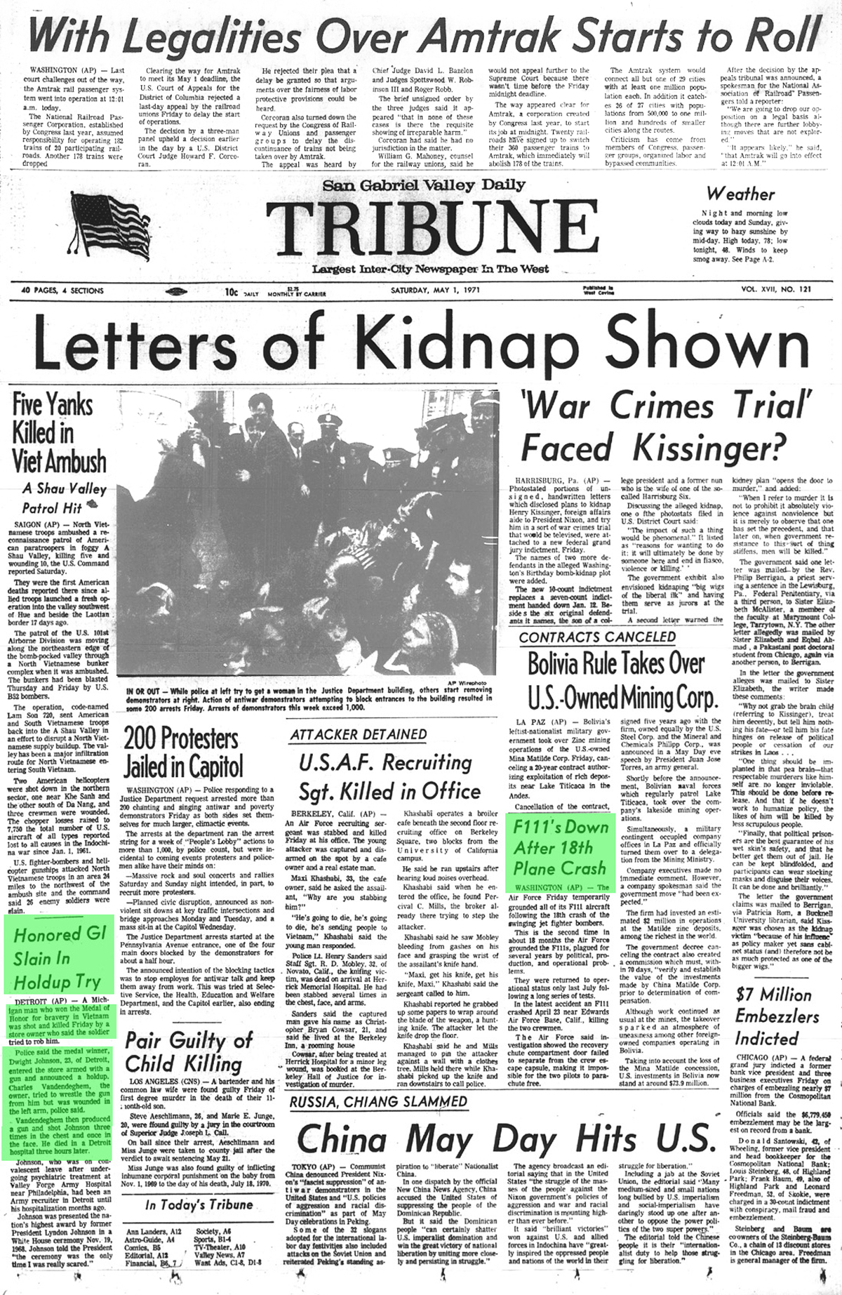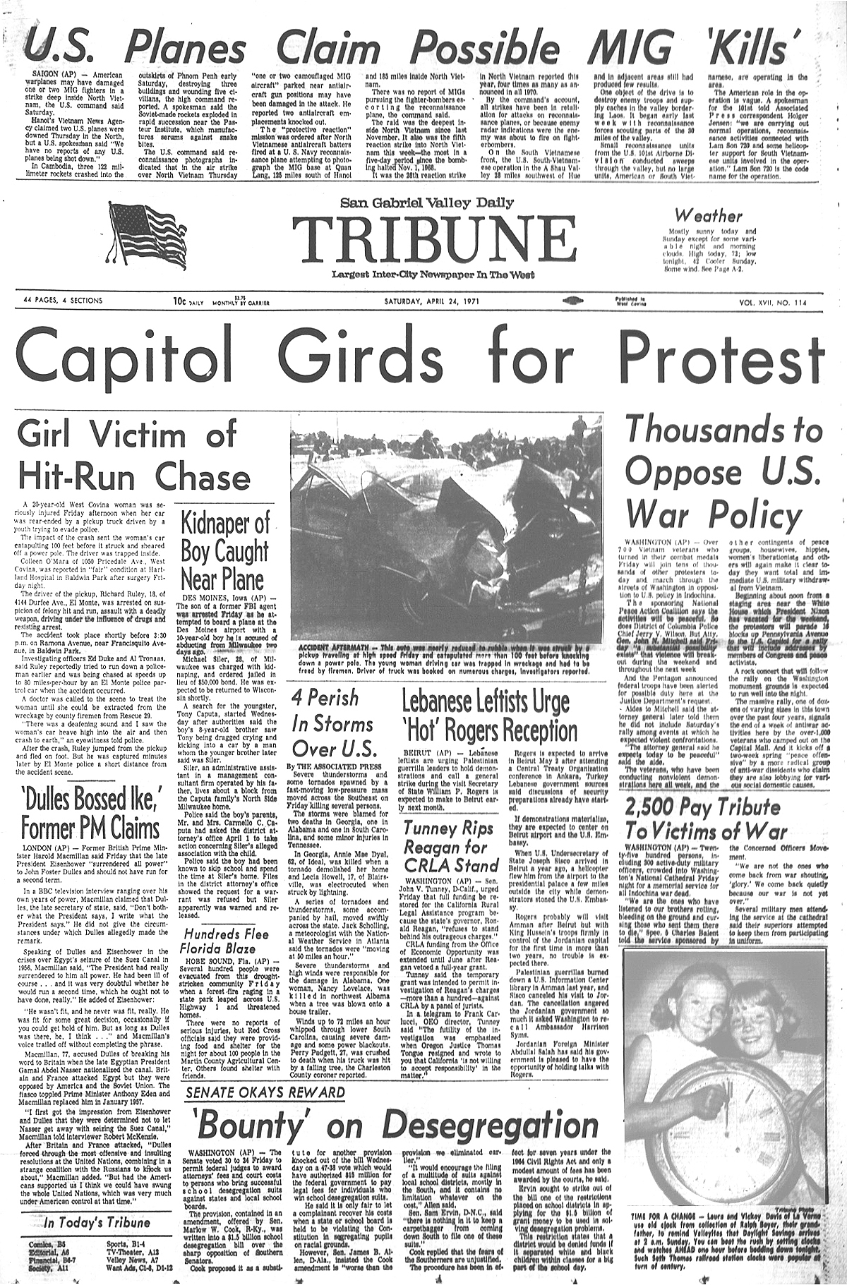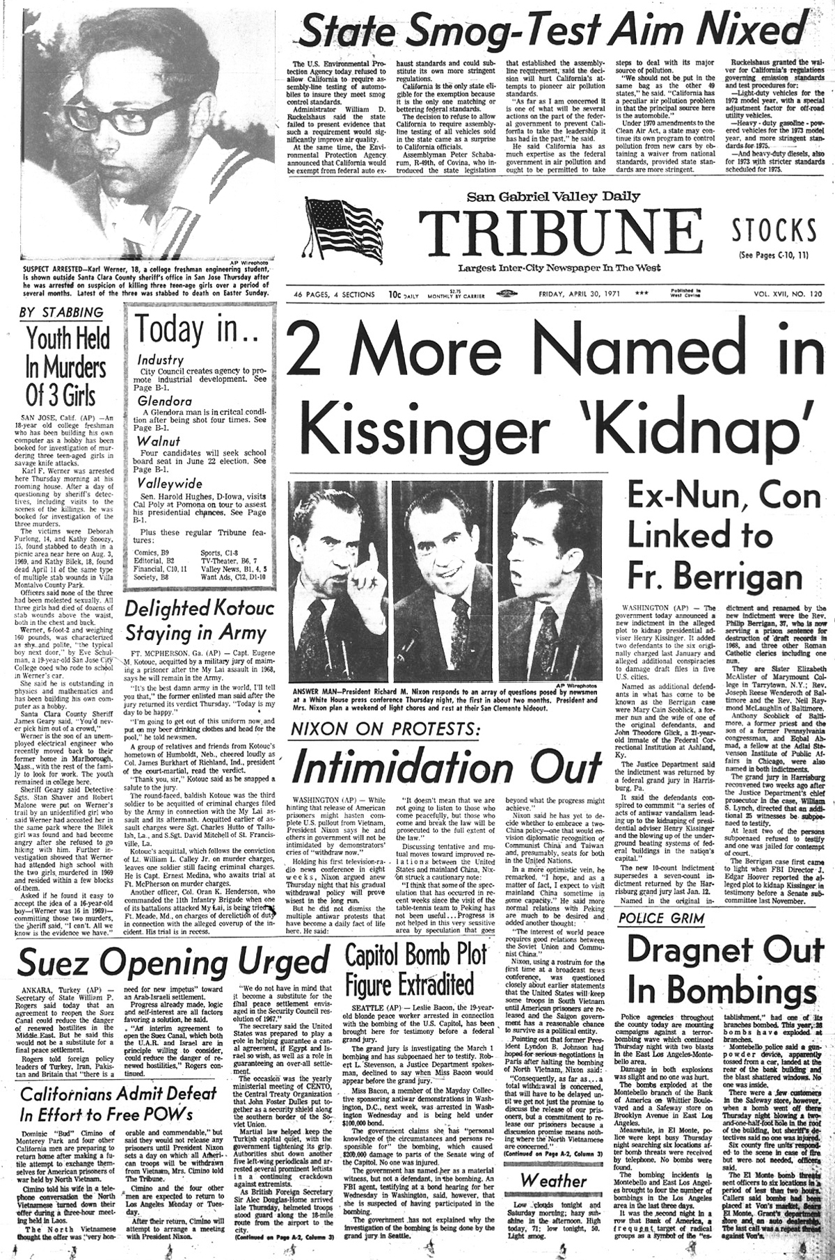 Newspaper articles from that time period in the days that followed my release from custody at Biscailuz Center on April 13th 1971.