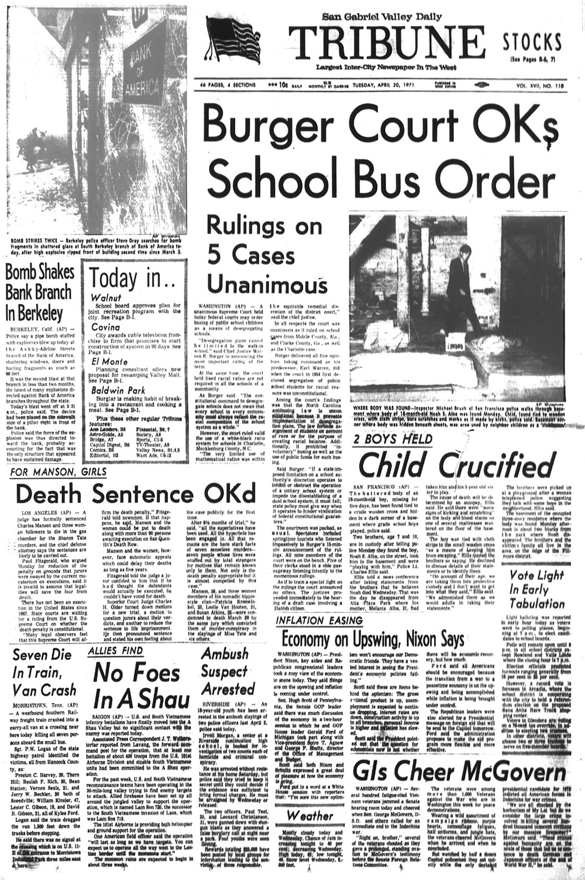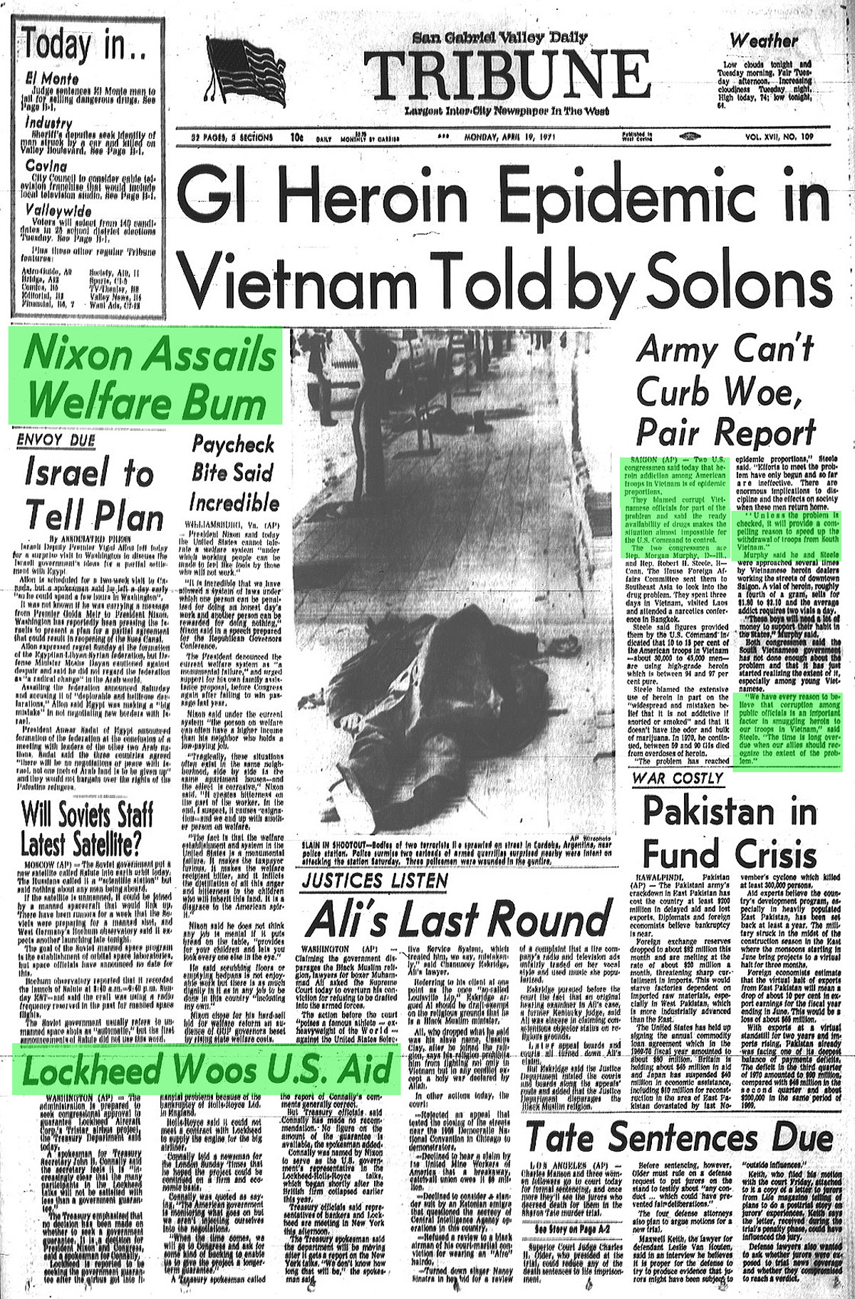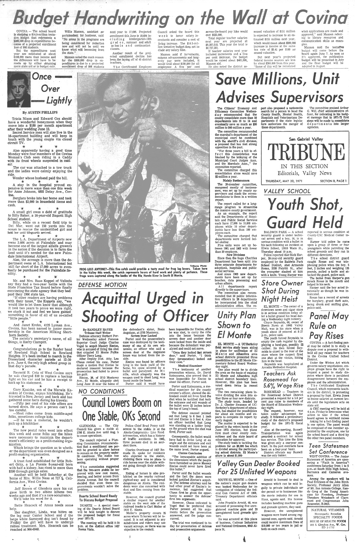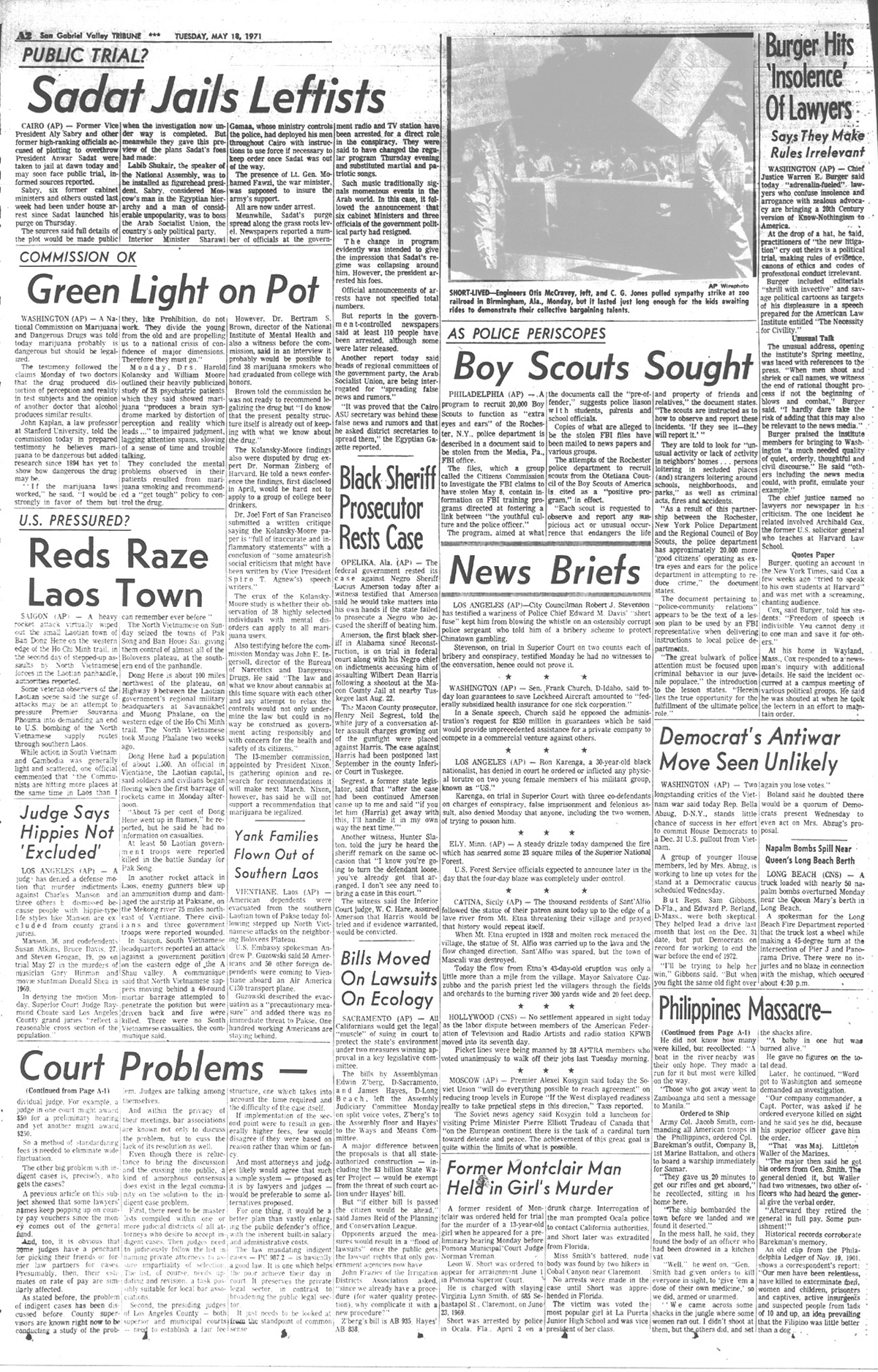 Newspaper articles from that time period in the days that followed my release from custody at Biscailuz Center on April 13th 1971.