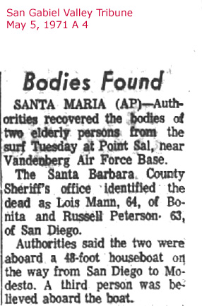 Their Dad started investigating the rape-murder of his mother and complained to the Santa Monica cops about their failure to investigate the murder further. -- Their Dad suddenly turned up dead, purportedly as the result of a heart attack in about November '68 as I recall. The L.A. County Recorder's office has no records of these two deaths whatsoever. The existence of these two people has been virtually erased as if these two people were non-persons that never existed in some totalitarian Orwellian like police state.