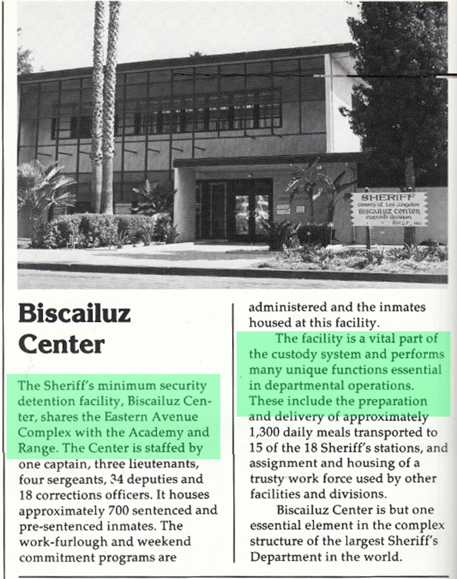 In the following weeks after the tour of the L.A. Sheriff's Academy on April 15th 1971 only two days after my release from Biscailuz Center on April 13th, our avuncular like class instructor L.A. Det. Sgt. 'Al' Ostman took our police science class on tours to the L.A. County Men's jail where I was also an inmate at for about a week in March '71, and later our class toured the Sybil Brand Women's Jail, the West Covina City Jail, the L.A. Sheriffs San Dimas Station near Covina, and also some local fire stations as well.