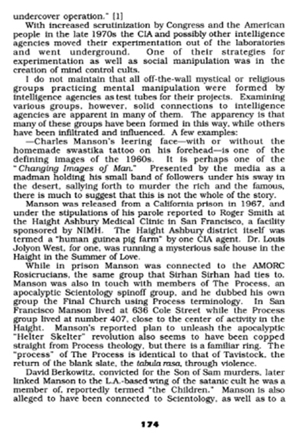 The findings and conclusions cited in excerpt's from late Jim Keith's book: "Mind Control, World Control" below appears to corroborate, at least in part, my claims regarding Manson Family Attorney Hughes fate in November 1970.