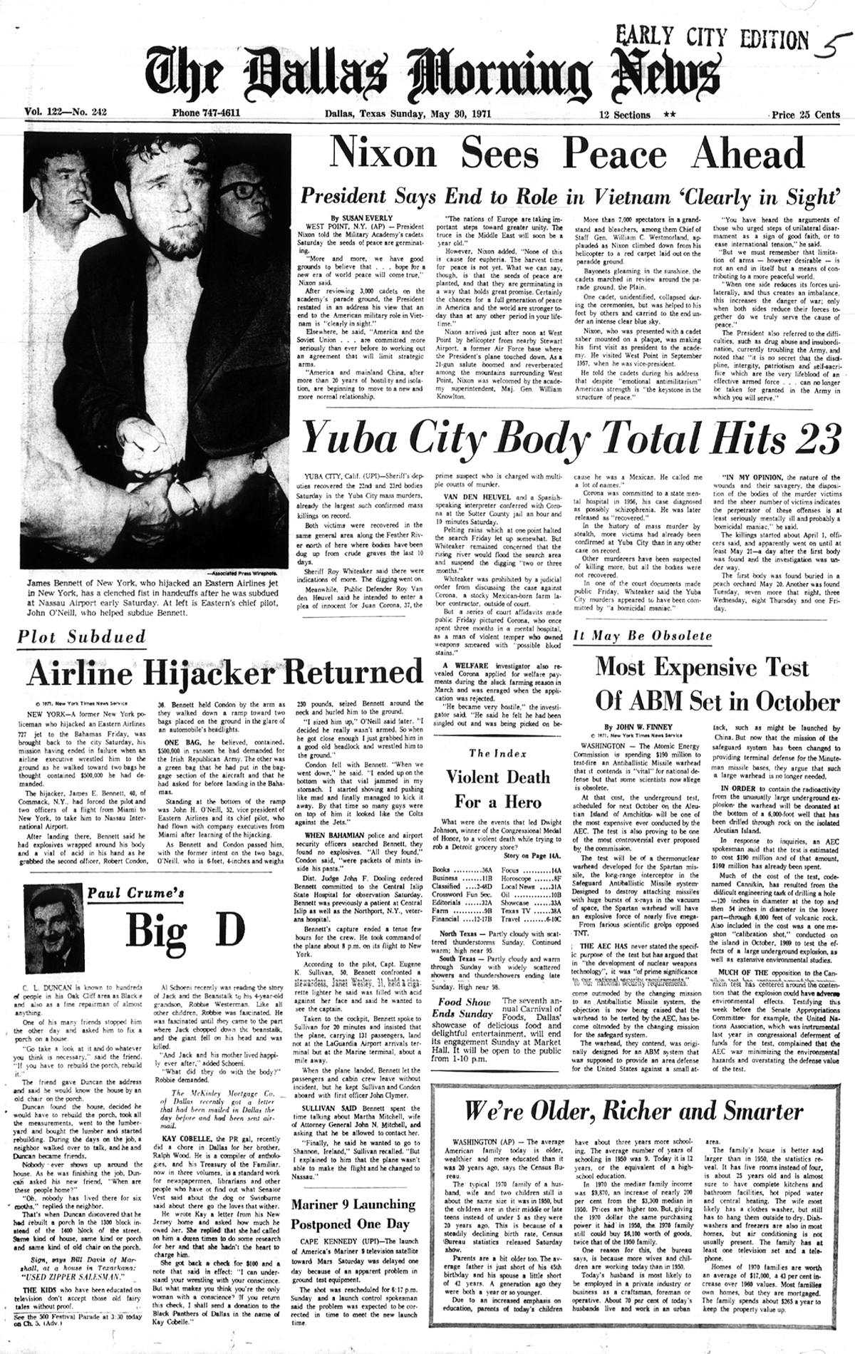 The way that the 'Dallas Morning News' and other newspapers nationwide ran a full page spread on the drug related death of Sgt. Johnson ran on May 30, 1971, this within only hours after Audie Murphy's so called 'disappearance' and reported death. This was typical CIA media 'Psy Ops' at it's best.