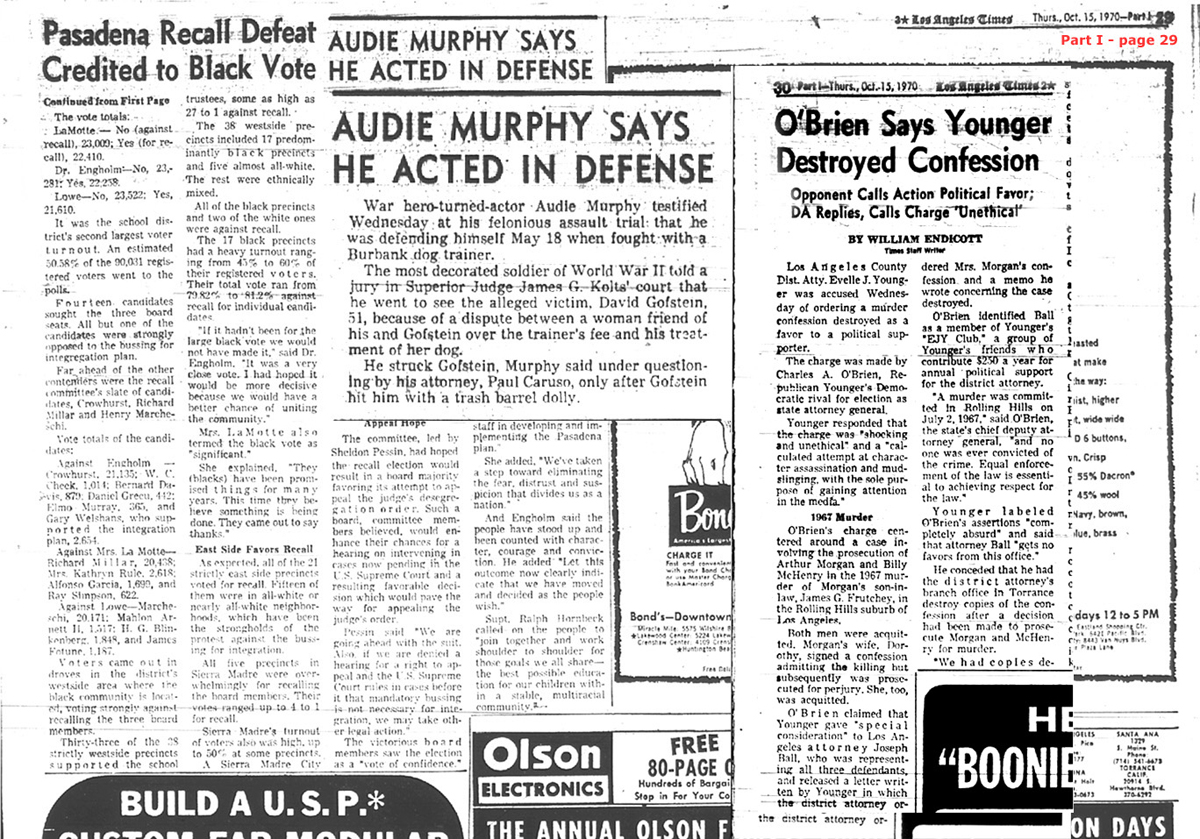 Before America's most decorated World War II hero Audie Murphy was kidnapped, interrogated and murdered, the elements of U.S. intel created 'rigged' 'frame up' situations that appeared in the press and news media nationwide in the months leading up to War Hero Murphy's death. This was done in order to discredit Murphy in the eyes of the American People.the