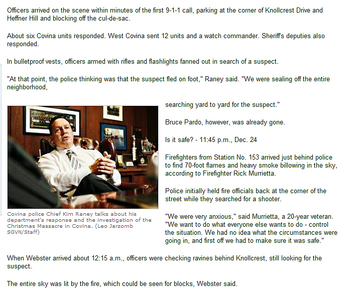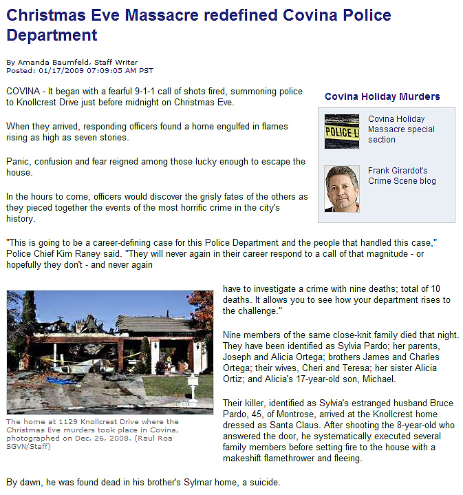 The Christmas 2008 mass murder in the Charter Oak area of Covina and the bulldozing of the crime scene less than a week later.