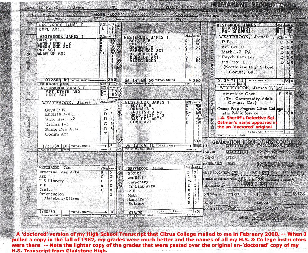 This was only hours after I returned to the place where I lived in Venice, California since 1988 and was reminiscing over my high-school days from 1967 through 1971 as I looked through the copies of of the pages of some high school annual that I scanned into my laptop as I sat sipping scotch and smoking 'weed'. I must admit that I 'welled up' a bit looking at the photos and thought about the past and all the 'frame ups', murders and horrors that were to plaugue my life since 1971 on up to October 2001 what with the post '9-11' Anthrax attacks in Trenton where I had received some research material by FAX on September 20, 2001. -- There were also numerous 'dust ups' and games to follow on up to January 2008. in Trenton hat