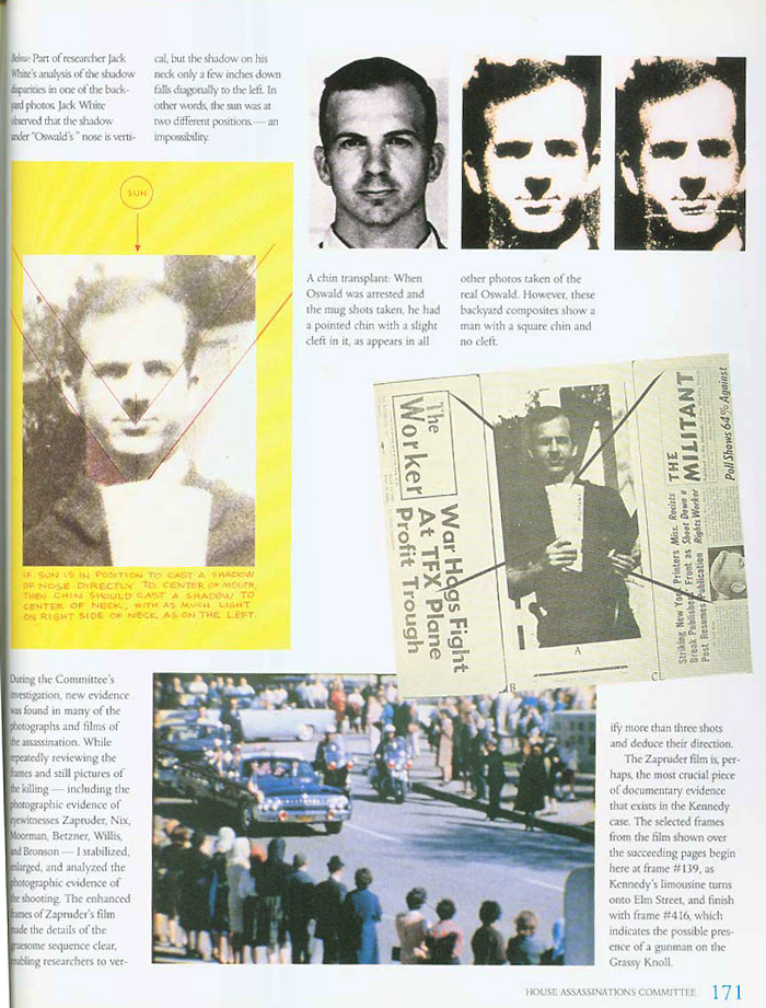 LIFE magazine's cover from February 21st 1964 with the obviously doctored photo of assassination patsy Oswald's head pasted onto a photo of a man holding a rifle, with his face and body shadowed in three different time zones all at once says it all. According to my sources there were actually three editions or more of this same issue and of which my friends and I severely criticized therein Mrs. Jenkin's 6th grade class at Valleydale elementary, as the frames of the Zapruder film were arranged in an out or order fashion that made the whole thing seemed comical were it not so horrifically gruesome and Orwellian like in it's pathetic attempt to confuse and mislead the Amercan people about the 'JFK' assassintion.