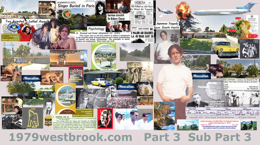 Copyright 2001 - 2020 James Thomas Westbrook --- All Rights Reserved --- The author exercises any and all rights of exclusivity he is lawfully entitled to pursuant U.S. Copyright Law as a literary property. --- "1979" is a copyrighted non-fiction book technically speaking, and was first registered with the U.S. Copyright Office on December 31st 2001. ---- The author also exercises any and all copyright protection he is entitled to as a graphic artist,regarding the copyrighted photo art montages included thereon each and every one of the title pages of Parts 1 through 13 as well as the various Sub-Parts contained in Parts 1 through 13 of "1979". This also applies to the Epilogue to it. --- Any and all inquiries regarding "1979"/1979westbrook.com may be submitted to me by e-mail at: 79westbrook@protonmail.com or Westbrook79@Yandex.Com