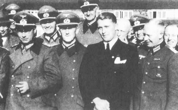 Above Left: A photo of the underground factory 'Dora' with it's forced laborers and what looks like the tail section of a V-2 rocket. Above Right: Walt Disney with Dr. von Braun. The bodies of some Dr. von Braun and Major-General Dr. Walter Robert Dornberger's laborers. * Along with other German rocket scientists, Dornberger was released and brought to the United States under the auspices of Operation Paperclip, and worked for the United States Air Force for three years developing guided missiles *.https://en.wikipedia.org/wiki/Walter_Dornberger