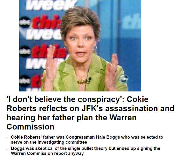 On December 20, 1991 the landmark expose film 'JFK' was released, and much of the movie was devoted to the Warren Commission's cover up of the 1963 assassination of President Kennedy, and her late husband, Congressman Hale Boggs complicity in the treason as a member of the Warren Commission responsible for the 'Warren Report' 'white wash'.
