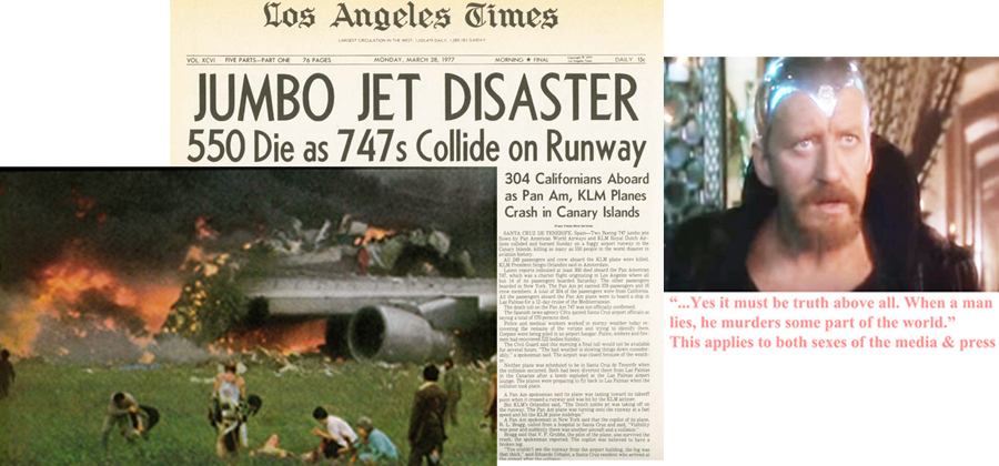 I can't help but conclude that the bombs threats and control tower misdirections that resulted in the Dutch KLM 747 - Pam Am 747 collision at Tenerife Airport in the Spanish Francoists* controlled Canary Islands on March 27, 1977 isn't somehow connected in a number of ways to Dutch Journalists Willem Oltmans efforts to bring George DeMohrenschildt before the House Assassinations Committee during that same time period in March of 1977.