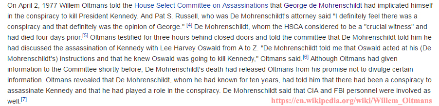 It's no mere coincidence that DeMohrenschildt was last seen publically on March 27th 1977, the very same day of the Dutch KLM 747 - Pan Am 747 rigged runway crash at Tenerife.