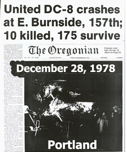 It was December 24th Christmas Eve 1978 when I left my digs in Hillsboro and moved into the house on 57th and it was only 4 days later and 5 miles away that the so called United Airlines DC-8 crash took place in Portland. -- I was still reeling from the front page newspaper and magazine photos of the flaming PSA Airlines 727 plunging from the skies over San Diego on September 25, 1978. The crashsite photos were just as bad. Unlike the other phony crashsites in then recent years, the PSA crash in San Diego was the real deal.I glanced at a few photos of the December '78 United DC-8 crash from the newspapers from most of the West Coast cities, then sold in the Portland newsracks and I knew that this crash was a phony and an even more obvious one as well.