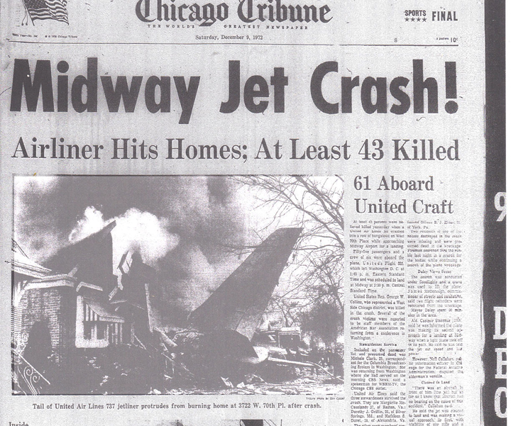 When I saw these crash photos and others like it in the newspapers and magazines back in December 1972, I found it hard to believe that a plane crash ever took there in that Southside Chicago neighborhood near Midway Airport. -- This was because the 'foot print' of the United Airlines 737 jetliner is just way too small.