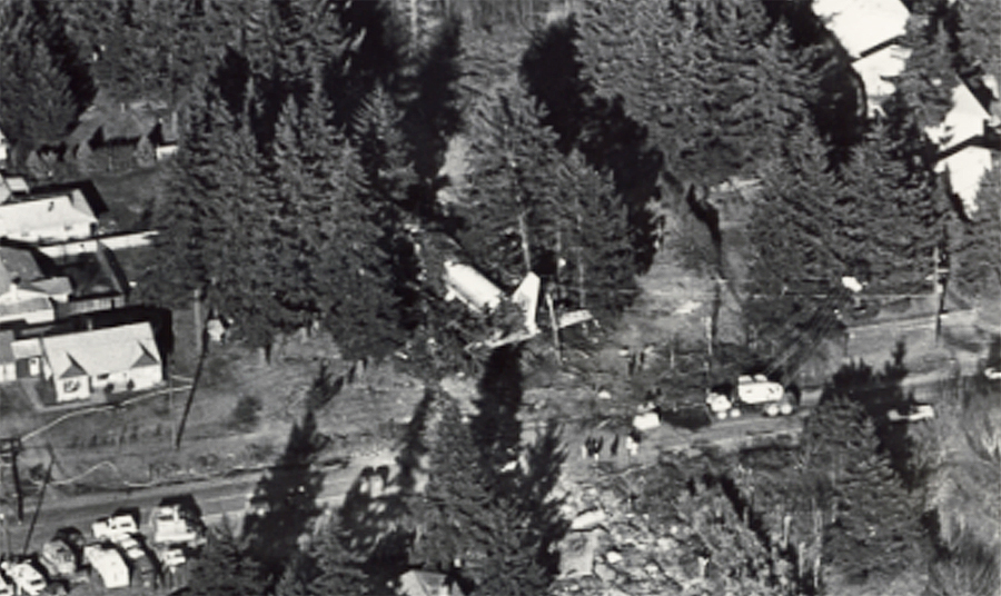 In the December 1978 United DC-8 jetliner crashes into a wooded lot with a house on it in Portland, Oregon and dosen't even singe, bend or break the branches Douglas Fir trees surrounding it.