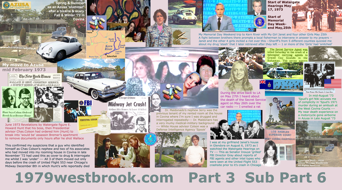 Part 3 Sub Part 6 also covers my reactions to the nationally televised Watergate hearings in August 1973 in which long suppressed revelations regarding the presence of the FBI and agents from other various intel, police and military organizatiions were present at the United Airlines Flight 553 crashsite an hour or more before the crash even took place on December 8th 1972.