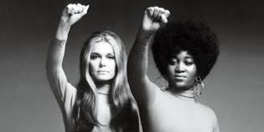 who was reportedly busy covering the FBI's apparent role in the '68 Martin Luther King assassination -- here giving the 'Black Power' salute with a Black Women, to show 'Sister Gloria's supposed solidarity with the women of color and their ongong struggles in the 1970's.
