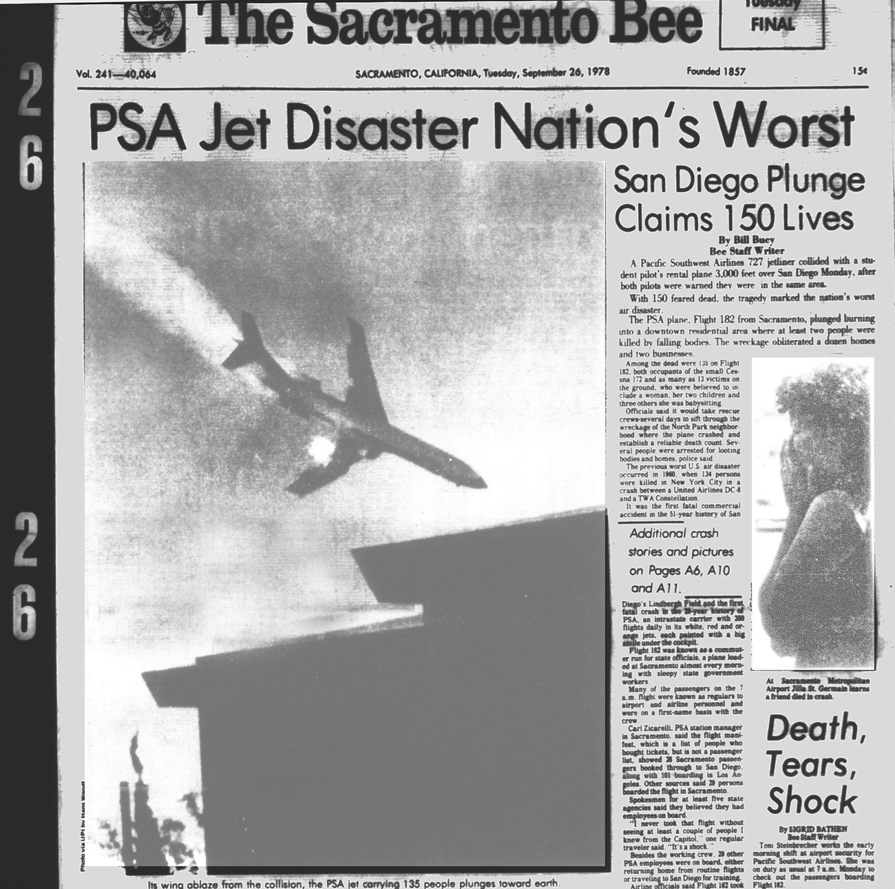 When I Saw The Front Page Photos Of The Flaming PSA 727 Plumetting To Earth In The Skies Over San Diego 3 Years Later In Septermber '78 I Immeditately Thought Of 'Callahan Days' In July '75 In And How It Was My Friend Bob From San Diego Who Was Key There In My Discovery Of The 'Plans For Me Up North' -- The Mid Air 'Take Out' Also Reminded Me Of The June '71 Mid Air Of An Air West 727 Near Bradbury Only 8 Miles From Where I Then Lived In Azusa And All The Bizarre Links It Had To Other Then Recent Crashes