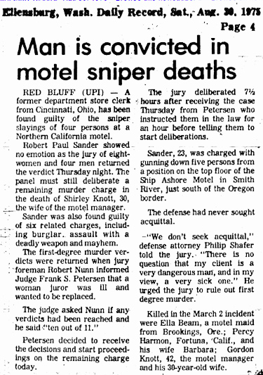 Forgive me if I seem a little blase' about all this, but by July '75, I had already gathered various bits of information regarding Karen's other activities and her visits to the 'Log Cabin' bar and other Yreka haunts as well from a number of sources, without letting on that I knew.