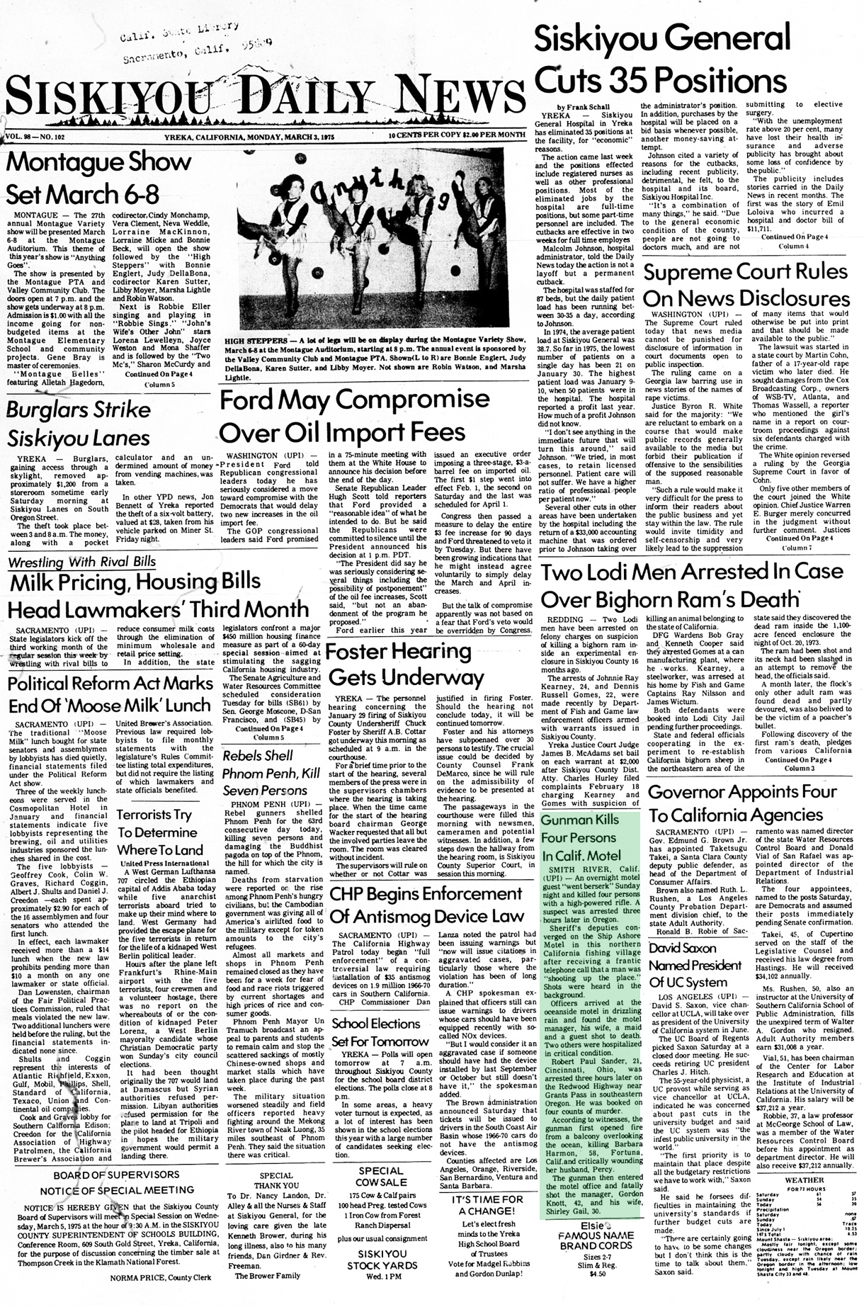 There were a lot of other kids and young people who like me were refugees from big cities all across the U.S. and West Coast living in Yreka during this time and some of them were pretty 'clued in' on the buzz from the underground grapevines that carried news and other information that one would never hear or read about in the mainstream media and press at that time during the height of the post Watergate era in in 1975, which made the malaise at that time.