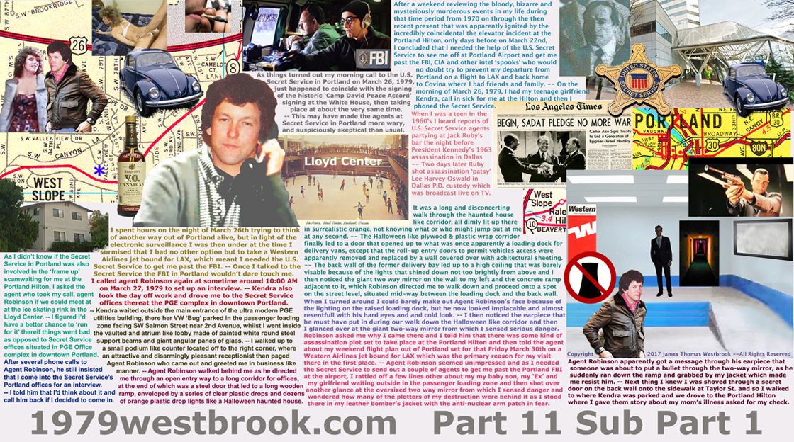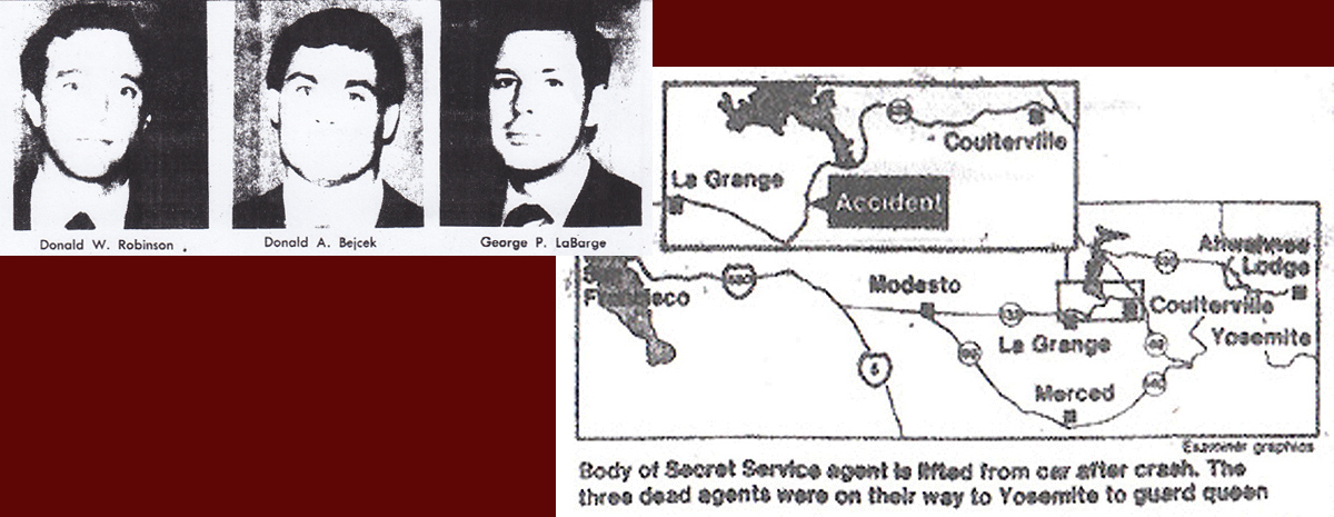 As for Donald Robinson, the agent who interviewed me at the U.S. Secret Services located inside PGE office complex in Portland, Oregon on March 27, 1979 after some negotiations over the phone with him on March 26th and the morning of the 27th -- his body along with those of agents George LaBarge and Donald Bejcek were all pulled from the badly mangled wreckage of the car there on closed stretch of highway leading into Yosemite National Park on March 5, 1983.jce
