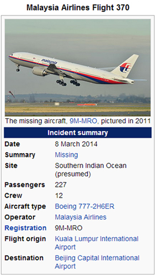 The so called "disappearance" of Malaysia Air Flight 370 took place on March 8, 2014, my 61st birthday.