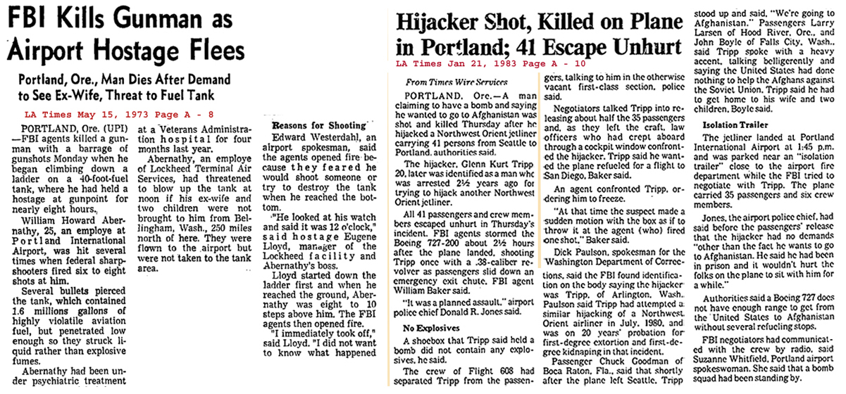 This was followed days later by my escape flight out of Portland Airport aboard a Western Airlines DC-10 jetliner on March 30th after a terrifying hour long bomb threat failed to scare me off the Western DC-10 bound of LAX Los Angeles and the flight's unscheduled diversion to SFO San Francisco and the Western DC-10 flight's overdue arrival at LAX March 31st. DC