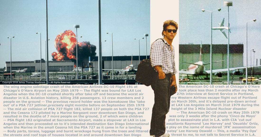 Only 3 weeks after the bogus May '79 'Cinco de Mayo' assassination plot, the worst air disaster in U.S. aviation history took place. The was the wing-engine sabotage crash of an American Airlines DC-10 at Chicago's O'Hare Airport on May 25, 1979 killing over 280 men, women and children there in the process. The American DC-10's destination was LAX Los Angeles.