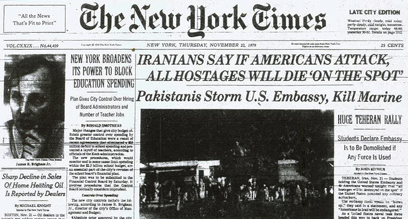 Four days later was the start of Iranian-American hostage crisis on November 4, 1979 another 'Psy Ops' media scam whereby the American People themselves became hostages psychologically and emotionally, thanks to the machivellian machinations of the of the American CIA reponsible for covertly installing the Ayotollah Khomeni thereby destroying President Carter's Administration and assuring former California Governor Reagan's rise to the White House in the 1980 election, a hard right turn for the United States.