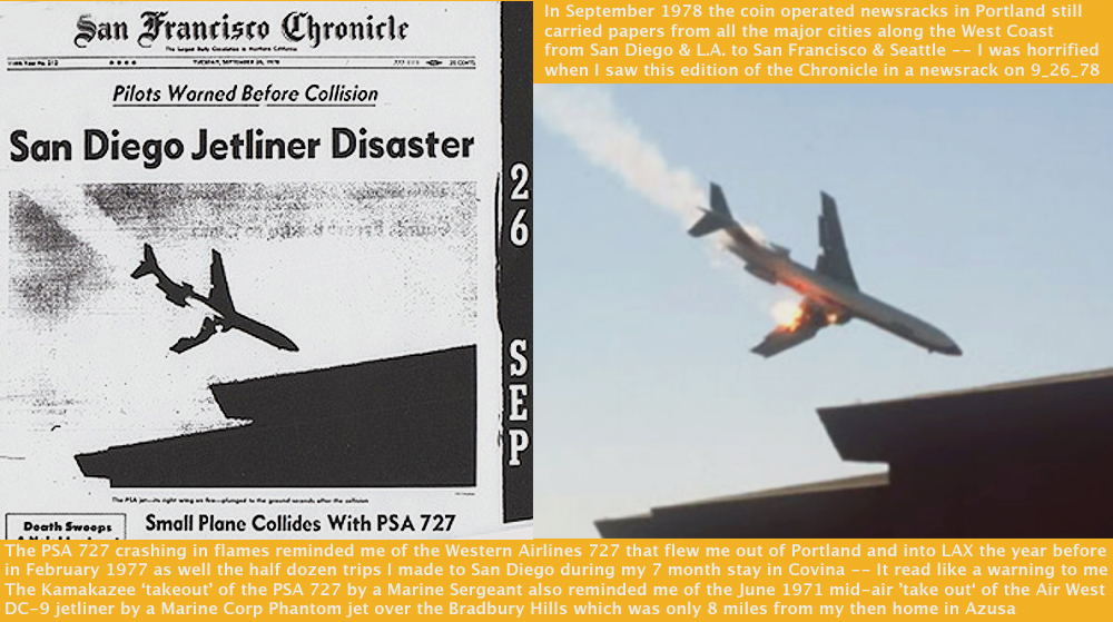 This was precisely 8 months to the day after the single engine Cessna 'Kamakazee' like, mid-air 'take out' of a PSA 727 over San Diego on September 25, 1978 that killed 135 men, women and childrenon board the flight and another 7 unsuspecting San Diego citizens on the ground when pieces of the 727 jetliner, baggage and bodies and body parts rained down them from the skies over San Diego.